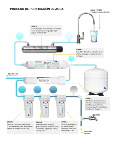 Purificador de agua Osmosis Inversa 100GAL. 6ET. UV Purikor cantidad