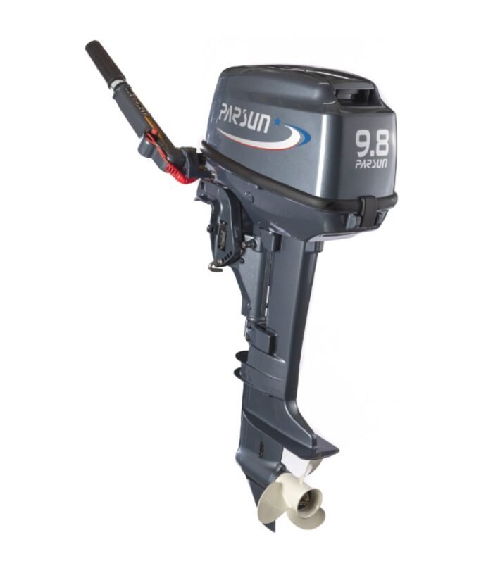 El T-9.8 BML es un fuera de borda compacto y robusto de 9.8 HP, diseñado para lanchas pequeñas, pesca artesanal y transporte ligero. Con arranque manual, dirección por timón (tiller) y eje largo (20″), ofrece empuje eficiente, bajo consumo y gran maniobrabilidad en agua dulce o salada.